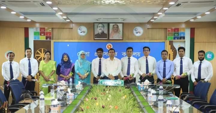 আজ ০২ জুলাই ২০২৩ তারিখ বাংলাদেশ লোক প্রশাসন প্রশিক্ষণ একাডেমি হতে আগত প্রশিক্ষণার্থীগণের মাঠ সংযুক্তির সূচনালগ্নে নরসিংদী জেলায় তাদেরকে স্বাগত জানান জেলা প্রশাসক ও জেলা ম্যাজিস্ট্রেট আবু নইম মোহাম্মদ মারুফ খান।