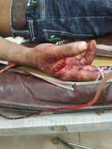 নরসিংদীর পলাশ উপজেলার ডাঙ্গা বাজারে সামান্য কথা কাটাকাটির জেরে একজনের হাতের কব্জী কেটে দিয়েছে সন্ত্রাসীরা। জানা যায় গতকাল বুধবার (৫ জুলাই) বিকেলে ডাঙ্গা বাজারের পাশে সিগারেট খাওয়ার জন্য ম্যাচ চাওয়াকে কেন্দ্র করে কথা কাটাকাটি হয় আরিফ ও শফিকুল ইসলাম নামে দুজনের। এই কথা কাটাকাটি করার সময় আরিফ শফিককে শায়েস্তা করার হুমকি দেয়। এরই জের ধরে আজ বৃহস্পতিবার (৬ জুলাই) সকালে হারুন নামে একজন শফিকুলকে বাড়ি থেকে ডেকে নিয়ে যায় ডাঙ্গা বাজারের পার্শ্ববর্তী জমিদার বাড়ীতে। সেখানে যাওয়ার পর পূর্ব থেকে উৎ পেতে থাকা আরিফ,লিটন, কাইয়ুম চাপাতি দিয়ে কুপাতে থাকে। চাপাতির কোপে শফিকুলের দু’হাতের কব্জি কেটে যায়। পরে তার ডাক – চিৎকার শুনে স্থানীয় এলাকাবাসী তাকে উদ্ধার করে পলাশ উপজেলা স্বাস্থ্য কমপ্লেক্সে নিয়ে যায়। গুরুতর জখমের কারণে কর্তব্যরত চিকিৎসক তাকে ঢাকা রেফার্ড করেন। আহত শফিকুল ইসলাম ডাঙ্গা গ্রামের মুফিদ আলীর ছেলে। শফিকুলের বাবা মুফিদ আলী বলেন, শুনেছিলাম গতকাল কামাল মেম্বারের শালা আরিফের সাথে আমার ছেলের কথা কাটাকাটি হয়েছিলো। এরই জের ধরে আজ সকালে আমার ছেলেকে বাড়ি থেকে ডেকে নিয়ে উকিলের বাড়ির পাশে নির্জন স্থানে কুপিয়ে দুহাতের কব্জি কেটে ফেলে। এক হাতের কব্জি পুরো আলগা হয়ে গেছে। সে এখন ঢাকা মেডিকেল কলেজের শেখ হাসিনা বার্ণ ইউনিটে চিকিৎসাধীন আছে। কামাল মেম্বার স্থানীয় প্রভাবশালী ও ডাঙা ইউনিয়ন পরিষদের চেয়ারম্যান সাবের উল হাই এর বিশ্বস্থ হাতিয়ার হিসেবে পরিচিত। সে সুবাদে তার শালা আরিফ সন্ত্রাসী বাহিনী নিয়ে এলাকায় ত্রাসের রাজত্ব কায়েম করতে চায়। তাদের বিরুদ্ধে থানায় একাধিক মামলা রয়েছে।