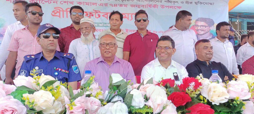 বিশেষ অতিথি ছিলেন উপজেলা পরিষদের চেয়ারম্যান আফতাব উদ্দিন ভূঁইয়া, জেলা আওয়ামী লীগের সহ-সভাপতি বীর মুক্তিযোদ্ধা আমিরুল ইসলাম ভূঁইয়া, মোন্তাজ উদ্দিন ভূঁইয়া প্রমুখ। প্রধান অতিথি নজরুল ইসলাম হিরু সৃত্মিচারণ করতে গিয়ে বলেন, জাতির জনক বঙ্গবন্ধু শেখ মুজিবুর রহমানের জেষ্ঠ্য পুত্র শহিদ ক্যাপ্টেন শেখ কামাল আমার একজন ঘনিষ্ঠ বন্ধু ছিলেন। আমরা একসাথে ভারতে মুক্তিযুদ্ধের ট্রেনিং নিয়ে ছিলাম এবং একসাথে যুদ্ধ করেছিলাম। সে শুধু ভালো ক্রীড়া সংগঠকই ছিলেন ছিলেন ভালোমানের একজন সাংস্কৃতিক মনা ব্যক্তি ছিলেন। সে যুদ্ধ প্রশিক্ষণকালিন ক্যাম্পে ছড়া কবিতা লিখে এবং আবৃত্তি করে প্রশিক্ষণ নেওয়া সকলের মনোবল চাঙ্গা রাখতো। শেখ কামাল একাধারে যেমন দেশের সেরা ক্রীড়া সংগঠক এবং ক্রীড়াবিদ ছিলেন, তেমনি ছাত্র হিসেবেও তিনি ছিলেন অত্যন্ত মেধাবী। পড়াশোনার পাশাপাশি তিনি মনেপ্রাণে দেশীয় সংস্কৃতি লালন এবং চর্চা করতেন। খেলাধুলা, সংগীত, অভিনয়, বিতর্ক, উপস্থিত বক্তৃতা ইত্যাদি প্রতিটি ক্ষেত্রেই তার অবদান ছিল অনস্বীকার্য। শেখ কামালের ৭৪তম জন্মবার্ষিকী উপলক্ষে তার রুহের আত্মার মাগফেরাত কামনা করেন তিনি। পরে শেখ কামাল এর আত্মার মাগফেরাত ও শেখ হাসিনার দীর্ঘায়ু কামনা করে দোয়া পরিচালনা করেন উপজেলা পরিষদ জামে মসজিদের পেশ ইমাম। এসময় ছাত্রলীগ, যুবলীগ, মহিলা আওয়ামী লীগ, স্বেচ্ছাসেবক লীগ, তাঁতী লীগ ও শ্রমিক লীগের নেতৃবৃন্দ উপস্থিত ছিলেন।