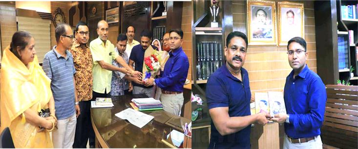 চেতনা রিপোর্টঃ নরসিংদী সংবাদপত্র পরিষদ (এনএসপি)’র পক্ষ থেকে নরসিংদীর নবাগত জেলা প্রশাসক ড. বদিউল আলমকে ফুলেল শুভেচ্ছা জানানো হয়েছে। ২০ সেপ্টেম্বর বুধবার বিকেলে জেলা প্রশাসকের কার্যালয়ে এই ফুলেল শুভেচ্ছা দেয়া হয়। শুভেচ্ছা প্রদানকালে নবাগত জেলা প্রশাসকের সাথে সংবাদপত্র প্রকাশে বিভিন্ন সুবিধা ও অসুবিধা নিয়ে আলোচনা করেন এনএসপি’র সদস্যবৃন্দ। এ বিষয়ে জেলা প্রশাসক সর্বাত্মক সহযোগীতার আশ্বাস প্রদান করেন। এসময় উপস্থিত ছিলেন, এনএসপি’র সভাপতি হারুন অর রশিদ, সাধারণ সম্পাদক এম এ আউয়াল, এনএসপি’র প্রতিষ্ঠাতা আহ্বায়ক এবিএম আজরাফ টিপু, লিয়াকত হোসেন, হোসেন আলী, আহাদুল হক সমীর, জাকির হোসেন, কবির হোসেনসহ অন্যান্য সদস্যরা। এছাড়া শুভেচ্ছা বিনিময়কালে নরসিংদী জেলাবাসীর কল্যাণে সকলের সহযোগীতায় শান্তিপূর্ণ পরিবেশ বজায় রাখতে জেলা প্রশাসন সচেষ্ট থাকবে বলেও আশাবাদ ব্যক্ত করেন নবাগত জেলা প্রশাসক ড. বদিউল আলম।