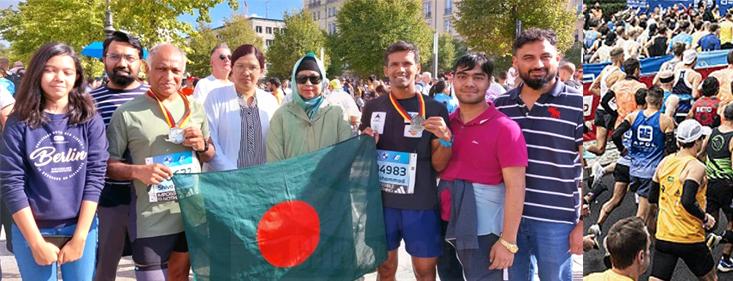 বার্লিনের ৪৯তম দূরপাল্লার এই ম্যারাথন দৌড়ে বাংলাদেশের পতাকা হাতে অংশ নেন ৭ জন। ব্যক্তিগত ও বাংলাদেশের হয়ে রেকর্ড টাইমিং করেছেন আয়রনম্যান খ্যাত মোহাম্মদ শামসুজ্জামান আরাফাত। ৪২ দশমিক ১ শত ৯৫ কিলোমিটারের ট্র্যাক শেষ করতে তিনি সময় নেন ২ ঘণ্টা ৫১ মিনিট। ব্যক্তিগত ও দেশের হয়ে এদিন দৌড়েছেন ১২৪টি আন্তর্জাতিক ম্যারাথনে অংশ নেয়া ৫৮ বছর বয়সী ক্রীড়াবিদ শিব শংকর পাল। লাল সবুজের পতাকা হাতে সাড়ে তিন ঘণ্টায় ফিনিশিং লাইন শেষ করেন তিনি। বাংলাদেশের ম্যারাথনের অন্যতম প্রতিযোগী আব্দুল্লাহ আল রাশেদ পুরো ট্র্যাক শেষ করতে সময় নেন প্রায় ৪ ঘণ্টার কিছু বেশি। লাল সবুজের পতাকা হাতে নিয়ে আন্তর্জাতিক এই ম্যারাথনে অংশ করতে পেরে গর্বিত প্রতিযোগীরা।