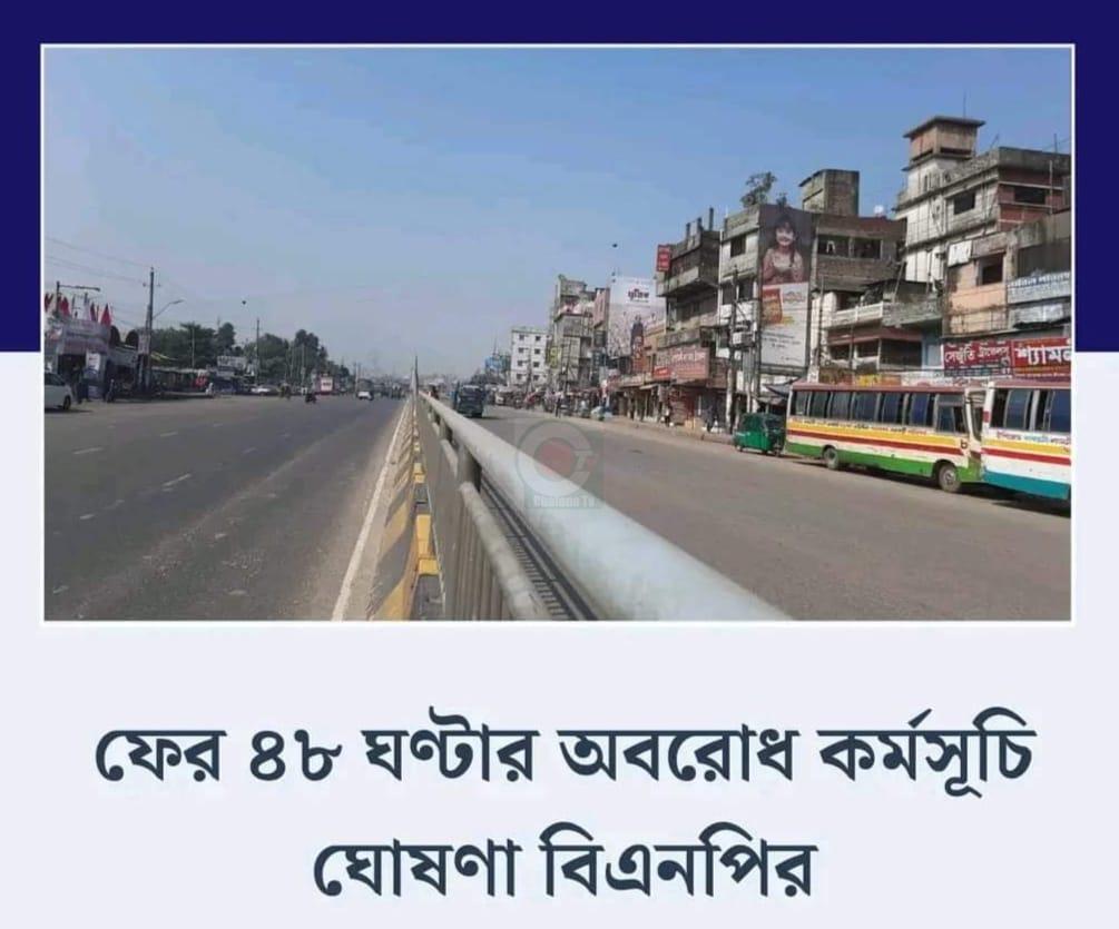 অপর দিকে, বিএনপির সমমনা রাজনৈতিক দল গুলো ও একই দাবিতে ৪৮ ঘন্টা অবরোধের ডাক দিয়েছে।