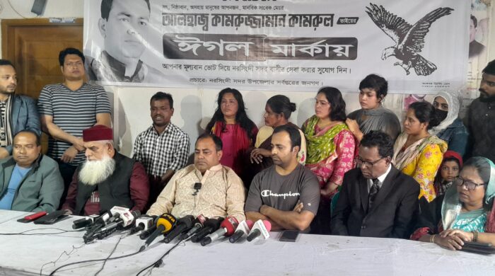 গতকাল রবিবার অনুষ্ঠিত সংসদ নির্বাচনে নরসিংদী সদর আসনের পরাজিত প্রার্থীর কর্মী সমর্থকদের উপর হামলা ও মারধর করার অভিযোগে সংবাদ সম্মেলন করেছেন নির্বাচনে পরাজিত স্বতন্ত্র প্রার্থী কামরুজ্জামান কামরুল। সোমবার (৮ জানুয়ারী)