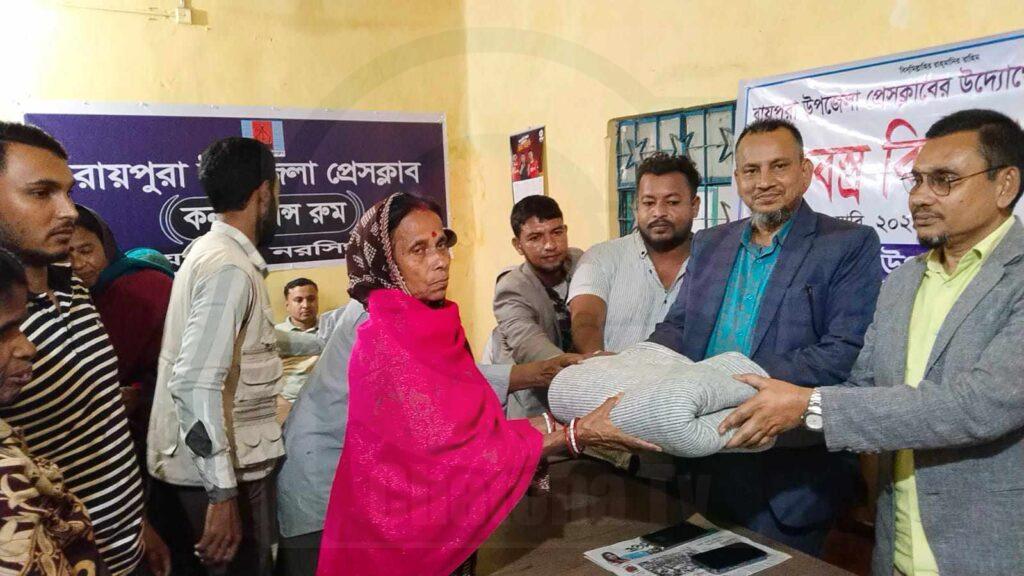 রায়পুরা উপজেলা প্রেসক্লাবের উদ্যোগে শীতবস্ত্র বিতরণ