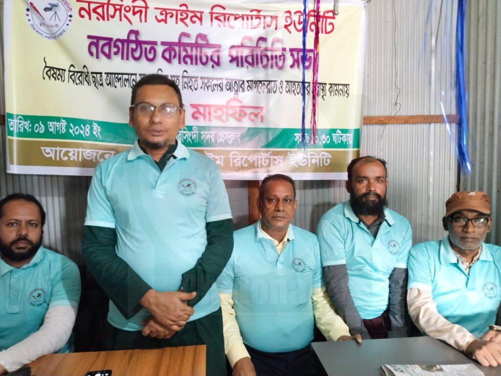 নরসিংদী জেলা ক্রাইম রিপোর্টার্স ইউনিটির পরিচিত সভা অনুষ্ঠিত হয়েছে। শুক্রবার (৯ আগষ্ট) নরসিংদী সদর প্রেস ক্লাবের হল রুমে এই সভা অনুষ্ঠিত। নরসিংদী জেলার ক্রাইম রিপোর্টার্স ইউনিটির নবনির্বাচিত সভাপতি মাসুদ রানা বাবুল’র সভাপতিত্বে অনুষ্ঠানে প্রধান অতিথি হিসেবে উপস্থিত ছিলেন সাপ্তাহিক আজকের চেতনা পত্রিকার প্রকাশক সম্পাদক এ বি এম আজরাফ টিপু।