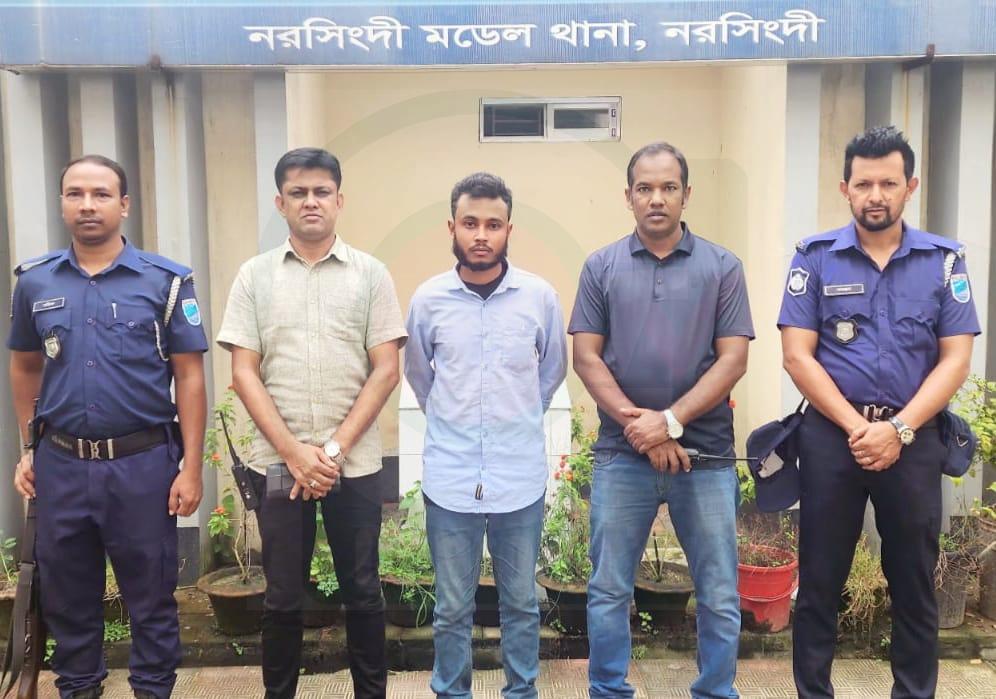 গ্রেপ্তারকৃত ব্যক্তি হলেন, রাকিবুল ইসলাম ওরফে রাকিব (২৪)। সে মাগুরা জেলার শ্রীপুর থানার হোগলা ভাঙ্গা এলাকার রফিকুল ইসলামের ছেলে। বর্তমানে নরসিংদীর ভাগদী এসি মসজিদ সংলগ্ন মৃত সাহাব উদ্দিনের বাড়ির ভাড়াটিয়া।