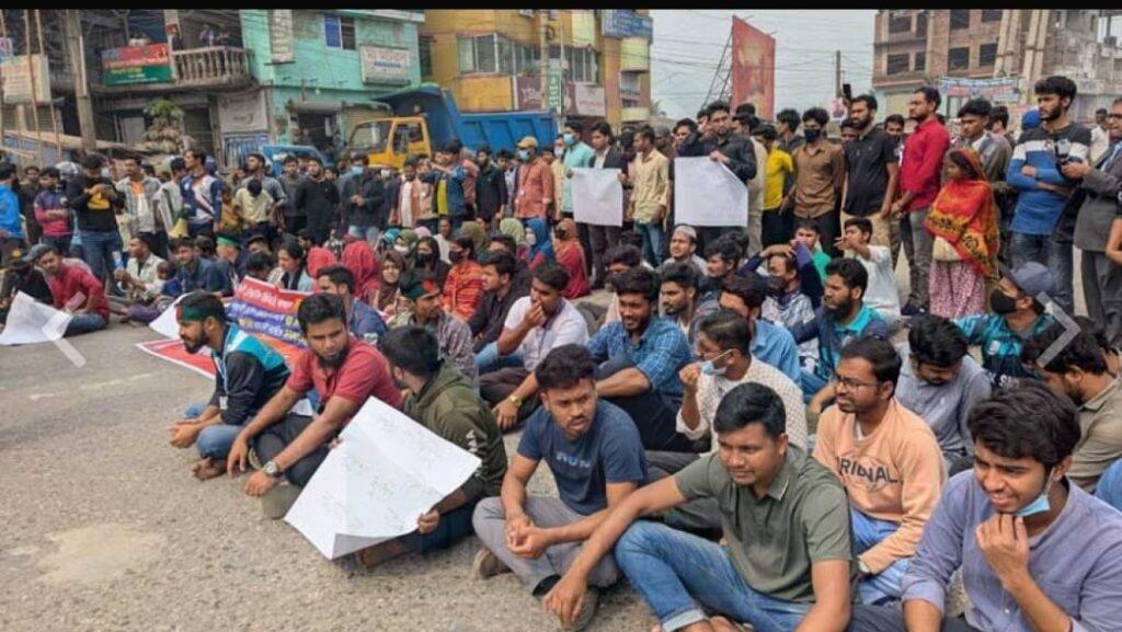 মঙ্গলবার (১১ ফেব্রুয়ারী) সকাল থেকেই কলেজ ক্যাম্পাসে বিক্ষুদ্ধ ছাত্ররা এসে জড়ো হতে থাকে। পরে তারা মিছিল নিয়ে সকাল সাড়ে ১১টায় সাহেপ্রতাব মোড়ে ঢাকা-সিলেট মহাসড়ক অবরোধ করে।