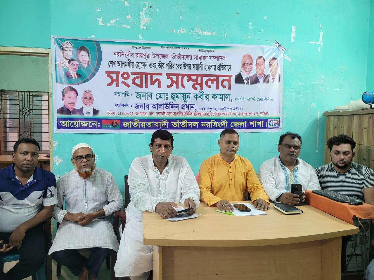 নরসিংদীতে তাতীদলের রায়পুরা উপজেলার সাধারণ সম্পাদক মো. শেখ আলমগীর হোসেন ও তার পরিবারের উপর হামলার প্রতিবাদে সংবাদ সম্মেলন হয়েছে।