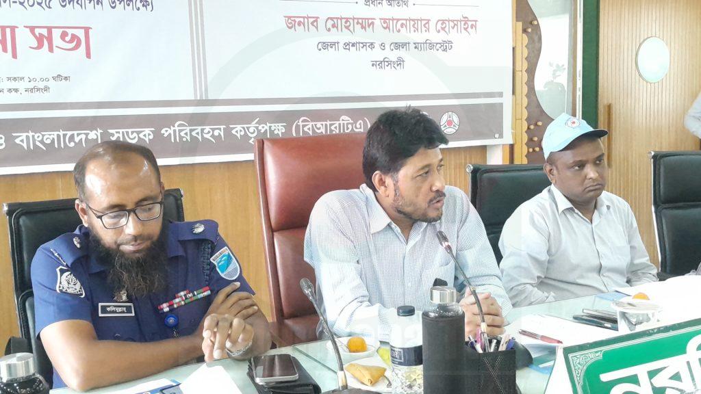 আলোচনা সভায় আরো বক্তব্য রাখেন,অতিরিক্ত পুলিশ সুপার কলিমুল্লাহ, স্থানীয় সরকার প্রকৌশল অধিদপ্তর নরসিংদীর সহকারী প্রকৌশলী পিন্টু চন্দ্র, সড়ক ও জনপদ নরসিংদীর উপ বিভাগীয় প্রকৌশলী প্রসেনজিৎ পাল,সহকারী প্রকৌশলী আমির হোসেন, উপসহকারী প্রকৌশলী আসাদুল ইসলাম, জেলা প্রেসক্লাব নরসিংদীর সভাপতি শফিকুল ইসলাম মতি,