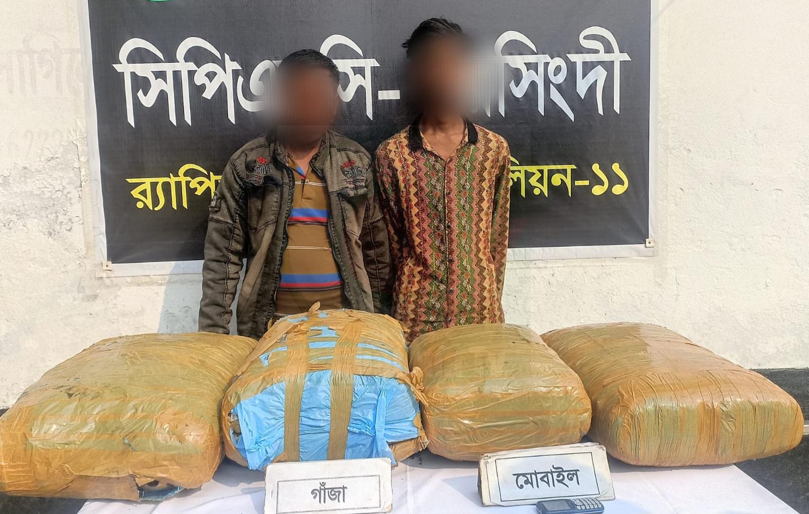 নরসিংদীতে বিশেষ অভিযান চালিয়ে ৪০.৫ কেজি গাঁজাসহ দুই মাদক ব্যবসায়ীকে আটক করেছে র্যাব ১১। এসময় মাদক পরিবহনে ব্যবহৃত একটি পিকাপ ভ্যান আটক করা হয়েছে বলে নিশ্চিত করেন র্যাব ১১ নরসিংদীর ক্যাম্প কমান্ডার অতিরিক্ত পুলিশ সুপার আরিফুল ইসলাম।