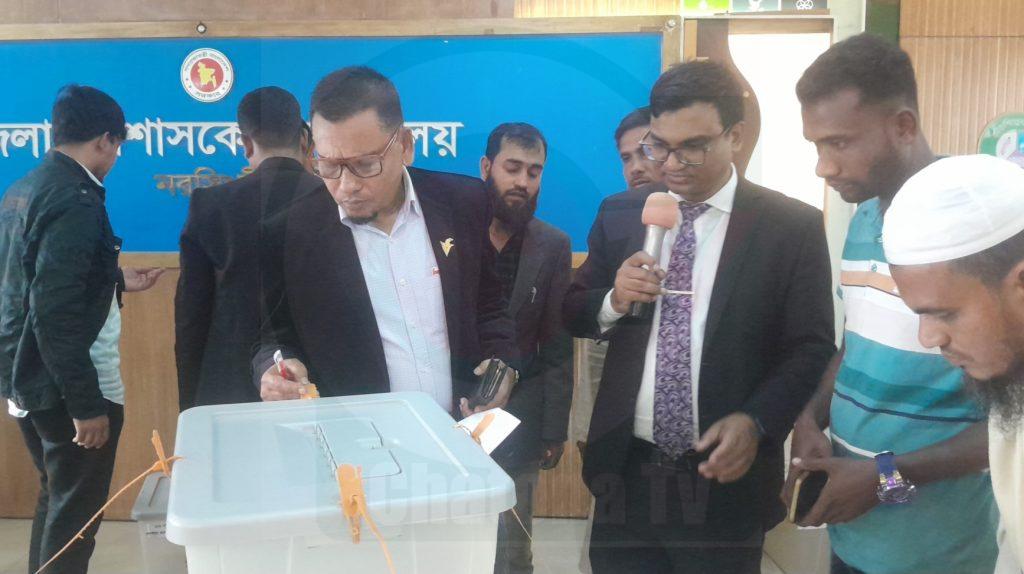 নরসিংদীতে পোষ্টাল ব্যালট বক্স লক করেছেন রিটার্নিং কর্মকর্তা