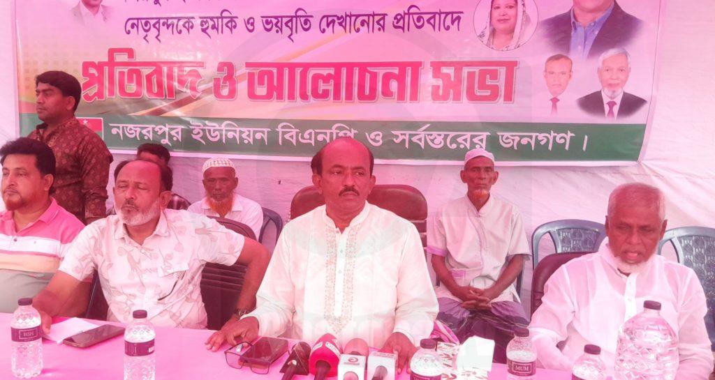 নরসিংদীতে দলীয় নেতাকর্মীদের বিভিন্ন হুমকি ও ভয়-ভীতি প্রদানের প্রতিবাদ জানিয়ে আলোচনা ও প্রতিবাদ সভা করেছে নজরপুর ইউনিয়ন বিএনপি। শনিবার বিকেলে নরসিংদী সদর উপজেলার দিলারপুর বাজারে এই প্রতিবাদ সভা অনুষ্ঠিত হয়। ইউনিয়ন বিএনপির আহ্বায়ক ও সাবেক চেয়ারম্যান জালাল উদ্দীন সরকারের সভাপতিত্বে প্রতিবাদ সভায় বক্তব্য রাখেন, ইউনিয়ন বিএনপির যুগ্ম আহ্বায়ক এ ফারুক, দাউদ মোল্লা,গোলাম ফারুক বাবু,সিদ্দিক বেপারী রুস্তম আলী পাঠানসহ সকল ওয়ার্ড বিএনপির সভাপতি ও সাধারণ সম্পাদকগণ।